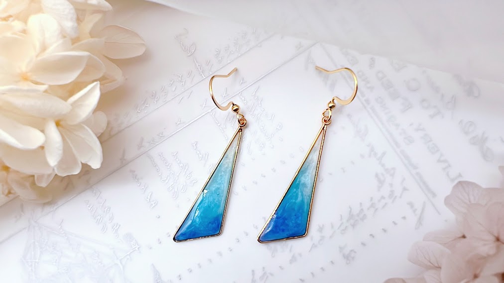 ♡⑅ॱ˖•.粉藍漸層夢幻沙灘.•˖ॱ⑅♡ 日本滴膠 三角形 氣質耳環 可改夾 限量