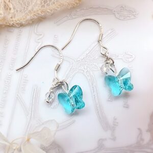 | 蝴蝶 | 施華洛世奇蝴蝶水晶 小清新耳環 可改夾 雲夢 江湖大夢 一夢江湖 楚留香ʚїɞ 藍綠色已絕版完售