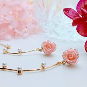 日系 玫瑰耳環 小巧貼耳款 長款 氣質 浪漫 施華洛世奇水晶 純銀耳針 耳夾 無痛