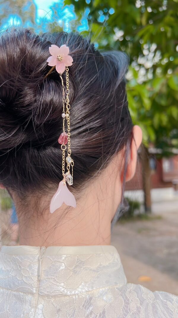 | 幽夢谷.櫻 | 髮簪 復古 草莓晶 人魚施華洛世奇水晶 蝴蝶