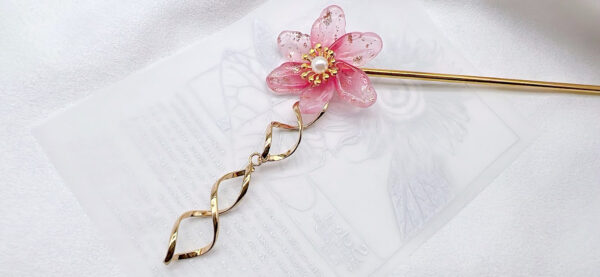 平常做的飾品們都比較小巧精緻類型,這次想要做大一點的飾品,於是乎~就有了這件作品的誕生啦~做完這件作品後,又做了另一支小巧精緻藍紫色花花的髮簪,拿起兩件作品想著命名時